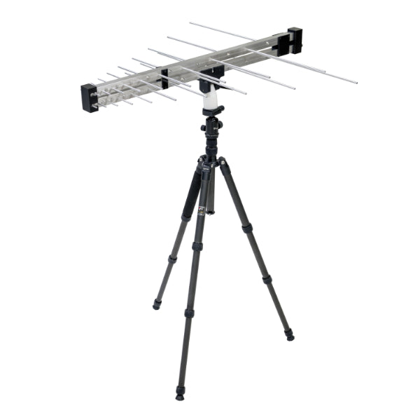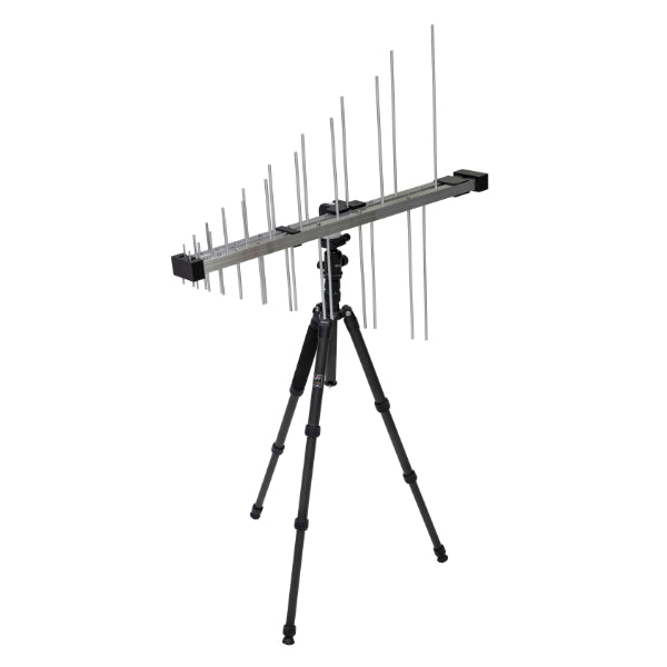 The TBMA3 is an average sized log-periodic antenna, with its radiating elements and supporting booms made from powder coated aluminum alloy. It is equipped with a standard female N-connector and comes together with an antenna bracket and a mounting adapter. A standard ¼” thread on the bottom of the mounting adapter makes it easy to connect it to most standard tripods.
